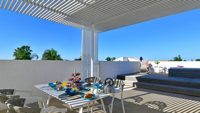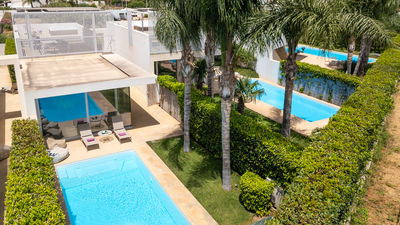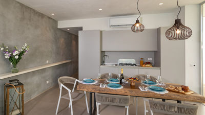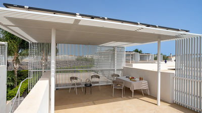 Villa Il Melograno si trova nella pittoresca Val di Noto, nella Sicilia sud-orientale, circondata da città barocche come Ragusa Ibla, Modica e Scicli, tutte Patrimonio dell'Umanità dell'UNESCO. Marina di Ragusa, con le sue spiagge di sabbia dorata e le acque cristalline, dista solo 3 km. Questa moderna villa, che fa parte di un gruppo di sette proprietà a schiera, presenta un design contemporaneo, materiali sostenibili ed energia solare. Le ampie porte-finestre creano una connessione perfetta tra gli spazi interni ed esterni, offrendo un'atmosfera luminosa e ariosa per il relax. Nota bene: la villa è collegata all'adiacente Villa Carrubbo. Se le due ville sono prenotate insieme, è possibile passare da una villa all'altra non solo attraverso gli ingressi principali, ma anche attraverso una porta con serratura situata nel giardino.