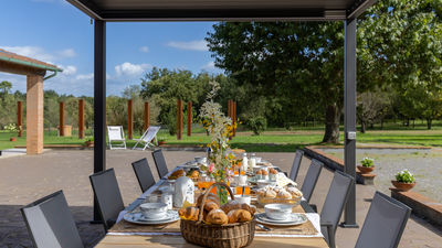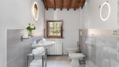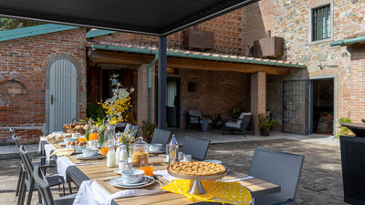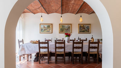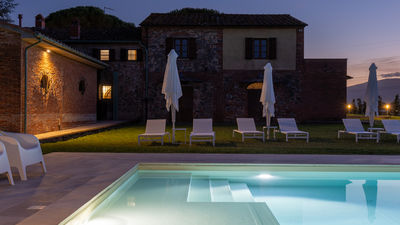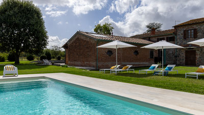 Parco:Il giardino di 5.000 mq che circonda il casale è delimitato da fiori, erbe aromatiche e piante tipiche toscane come allori, melograni e olivi. Un pergolato adiacente all'area della piscina offre un punto di ristoro ombreggiato e dotato di barbecue. I comodi posti a sedere sotto il portico creano un accogliente spazio di vita all'aperto. La bellezza naturale del giardino e l'ambiente tranquillo ne esaltano l'atmosfera rilassante.N.B.: Si precisa che i servizi fotografici solitamente vengono realizzati in primavera, pertanto i colori e le fioriture dei giardini, dei prati e dei parchi potrebbero essere diversi al momento del vostro ingresso in villa.