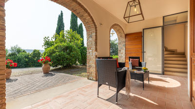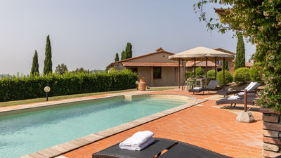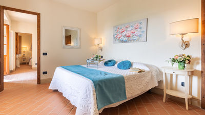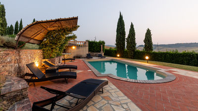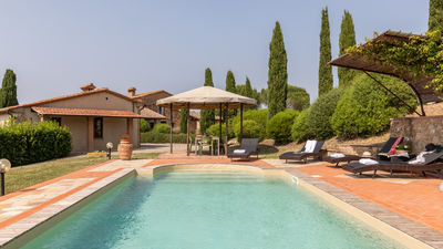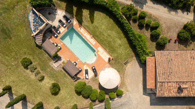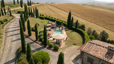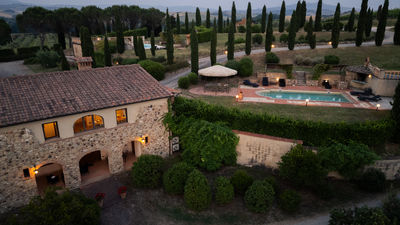 Circa due chilometri separano questo grazioso casale di campagna dall’anfiteatro naturale dell’Uccelliera, sede del prestigioso Teatro del Silenzio, in onore di cui prende il nome e su cui la bella e panoramica piscina si affaccia, regalando uno strepitoso scenario aperto sul paesaggio delle colline pisane che fasciano la proprietà e che termina all’orizzonte sui profili dell’antichissima Rocca di Pietra Cassia e del pittoresco borgo di Lajatico, con la svettante Torre Civica in primo piano. Casale Teatro è ispirato nella forma all’architettura tipica toscana, con esterni in pietra faccia vista. Gli interni, caratterizzati da caldi pavimenti in cotto e travi in legno ai solai, dispongono di due grandi zone living con caminetto, attrezzate per il pranzo ed il relax, e di una cucina ben accessoriata, mentre le camere, luminose ed intime, sono tutte con bagno en suite. Cinto da un bel giardino accudito, attrezzato con zone living per apprezzare al meglio le rilassanti atmosfere di campagna ed inserito un’affermata azienda agrituristica a vocazione biologica, offre un’occasione unica per vivere una vacanza completa sotto tutti i punti di vista, in cui lo sport e la natura sono protagonisti assoluti. La tenuta vanta un’estensione di circa 400 ettari, di cui 100 di solo bosco, un autentico polmone verde popolato da fauna autoctona dove la natura si conserva intatta. Gli ordinati filari del vigneto e le argentee chiome di ulivi che si dipanano lungo la proprietà fanno da cornice e da guida ai numerosi tracciati naturalistici su strada bianca lunghi oltre 10km e con vari livelli di difficoltà da percorrere in mountain bike o a piedi, lungo i quali sono allestite, inoltre, tre postazioni di birdwatching. Per gli amanti del golf, inoltre, basterà percorrere pochi metri per trovarsi nel campo pratica immerso in un contesto davvero esclusivo. Leit motiv dell'intera gestione dell'azienda agricola è il rispetto integrale della natura. Pertanto i 400 ettari di terreno che compongono l'intera proprietà vengono coltivati e manutentati in forma strettamente biologica con inizio di approccio biodinamico, senza utilizzo alcuno di prodotti chimici quali disseccanti o pesticidi. Nell’estesa proprietà si produce quanto di più pregiato questa terra fortunata possa offrire, un olio extra vergine di oliva ed un nettare prelibato che si declina negli aromi del sangiovese in purezza, da degustare direttamente nelle cantine della fattoria. Presso il ristorante si potranno assaggiare i piatti tipici dai sapori autentici della cucina locale, preparati ancora secondo lo stile semplice e genuino della tradizione. La collocazione geografica del casale è ideale per esplorare un’area davvero ricchissima di itinerari culturali di altissimo livello; la sua vicinanza ai principali raccordi statali, infatti, garantisce facili e rapidi spostamenti verso le principali città d’arte toscane, come Volterra, San Gimignano, Pisa, Firenze, Lucca e Siena. La Costa degli Etruschi, lungo il litorale livornese, con le sue splendide spiagge ed un mare pulitissimo dista circa mezz’ora, e in poco più si possono raggiungere le note località delle Versilia. La proprietà confina (su un lato) con Casale Fienile e con la villa dei proprietari (sul retro), da cui è separata, a garanzia di privacy, da uno schermo di siepi.