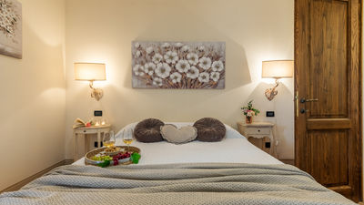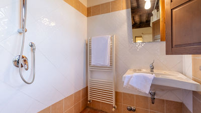 Il casale ha una superficie di circa 160 metri quadrati, distribuiti su due livelli (non comunicanti internamente) e, grazie alla sua posizione collinare su un terreno digradante, l’accesso diretto all’esterno è possibile anche dal piano inferiore. Entrando dall’ingresso al pianterreno si viene accolti dal soggiorno con area pranzo, direttamente collegato con la cucina e con tre camere matrimoniali (di cui due con letto divisibile). Ogni camera dispone di bagno en-suite con doccia, uno dei quali a norma per disabili (e senza bidet). La scala dalla cucina termina nel porticato al piano inferiore. Da qui si accede, tramite porta finestra all’appartamento composto da un’ area salotto con angolo cottura e da due camere matrimoniali con bagno en-suite con doccia. Un ulteriore bagno con doccia (a norma per disabili), con accesso dal porticato, infine, ospita la zona lavanderia.