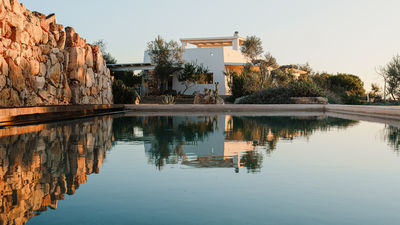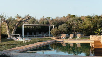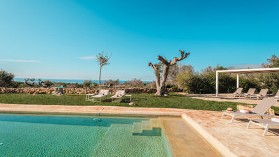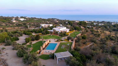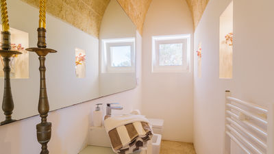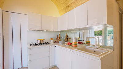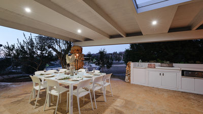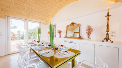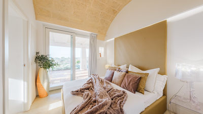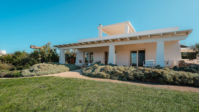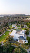 Kyvos è una villa moderna situata appena fuori da Santa Maria di Leuca, a pochi passi dal mare e dai sentieri costieri nel punto più meridionale del Salento. Il nome, che deriva dalla parola greca per "cubo", richiama il suo design geometrico dalle linee pulite e gli interni luminosi e minimalisti. La villa si sviluppa su due livelli e comprende cinque camere matrimoniali, tutte con bagno privato, oltre a un'ampia zona living open space e una cucina moderna. All’esterno, terrazze, portico e piscina con vista mare sono inseriti in un terreno privato di 8.000 mq arricchito da rosmarino, lavanda e timo. Questa residenza dal design deciso offre un contesto panoramico con facile accesso a spiagge, scogliere e al vivace lungomare di Santa Maria di Leuca.