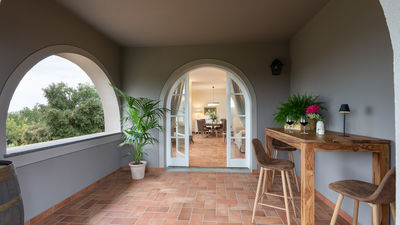 La proprietà si estende su un terreno di circa 20.000 mq, interamente recintato, di cui 5.000 mq costituiscono il giardino di pertinenza costituito da ampie aree di prato naturale. Un vialetto in ghiaia, bordato da cipressi, conduce alla villa e alla zona parcheggio. All'estremità del giardino si trovano un piccolo bosco e un oliveto. Accanto alla casa, una zona piastrellata è allestita con salotto, barbecue in muratura e area pranzo all'aperto, ed è vivacizzata da piante aromatiche.