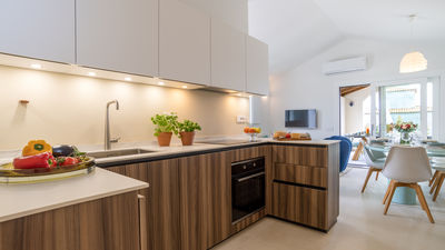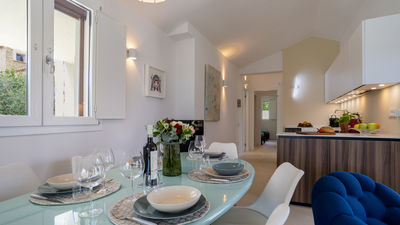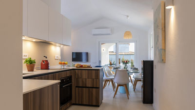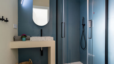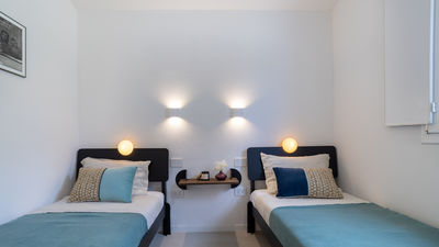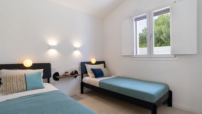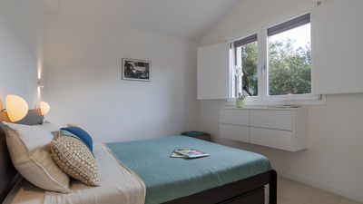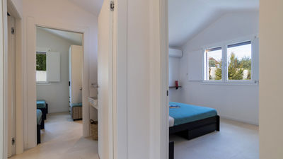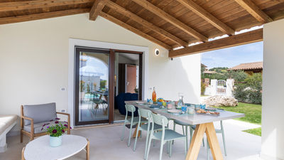 Casa Moros si sviluppa al piano terra per una superficie di circa 95 mq. PIANO TERRA - Open space, direttamente collegato al portico attrezzato attraverso una porta a vetri, che ospita il soggiorno e la cucina; zona notte con due camere matrimoniali con bagno en-suite con doccia e vista sul giardino e una camera doppia con bagno en-suite con doccia. La lavanderia è ubicata nel seminterrato. Aria condizionata nelle camere e nella zona giorno