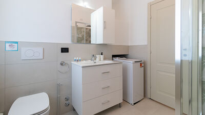 La cucina moderna e completamente attrezzata con forno, microonde, lavastoviglie e tutto l’occorrente, permette di preparare con facilità colazioni o cene in compagnia, mentre i due bagni offrono comfort e privacy per tutti gli ospiti.