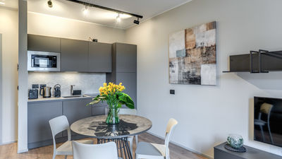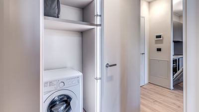 Incluso nel soggiorno: 3 rotoli di carta igienica, bagnoschiuma, shampoo e sapone per le mani, 1 kit per il lavaggio dei piatti, 2 capsule per lavastoviglie, 2 capsule per lavatrice, 6 capsule di caffè e 2 bottigliette d’acqua.