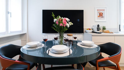 L'alloggio offre tutti i servizi essenziali per la massima comodità anche in caso di soggiorni a lungo termine: aria condizionata per il massimo comfort in ogni stagione, connessione wifi gratuita per restare sempre connessi e lavatrice per la massima praticità durante il soggiorno. Il salotto è dotato di una smart tv per i momenti di relax dopo una giornata trascorsa a esplorare la città. L'appartamento è inoltre completamente non fumatori, garantendo un ambiente salubre e piacevole per tutti gli ospiti.