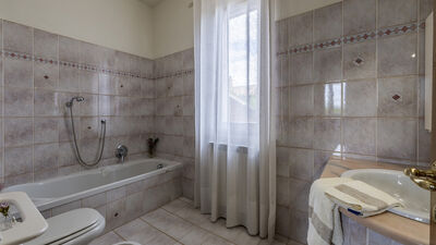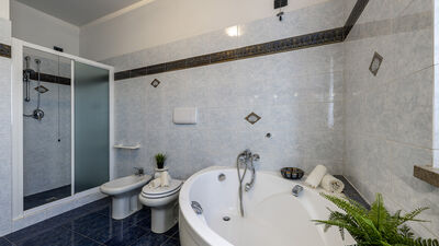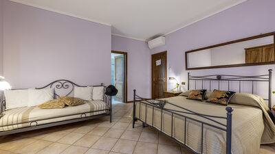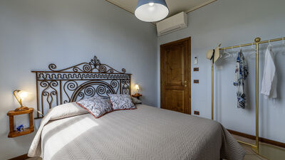 Il complesso (che si sviluppa su una superficie complessiva di circa 350 mq) è formato dal casale e da un annesso adiacente. CASALE (230 mq circa distribuiti su due livelli connessi sia da scala interna che esterna) – PIANO TERRA – Ingresso tramite porta finestra dal porticato che immette su un largo living con zona salotto e zona pranzo collegati da grandi aperture ad arco; cucina con accesso diretto al porticato con tavolo da pranzo; bagno con vasca. PRIMO PIANO – Si raggiunge da due rampe di scale poste ai due lati del living che conducono a due unità non collegate tra loro – Camera matrimoniale, bagno con vasca e doccia, camera matrimoniale (letto divisibile)con bagno en suite con doccia (prima unità dotata anche di accesso indipendente da scala esterna; scala a chiocciola). Due camere matrimoniali; bagno con vasca; camera matrimoniale con bagno en suite con doccia (seconda unità – scala dalla sala da pranzo). ANNESSO (100 mq circa; collocato su un lato del casale) – PIANO TERRA – Soggiorno; due camere matrimoniali di cui una con bagno en suite con doccia; bagno con doccia e lavatrice. Aria condizionata nelle camere da letto.