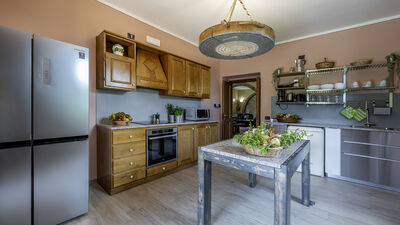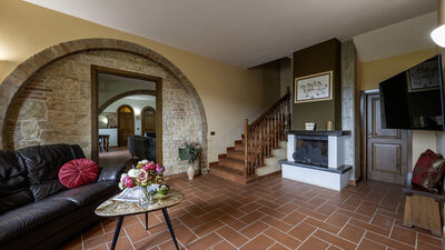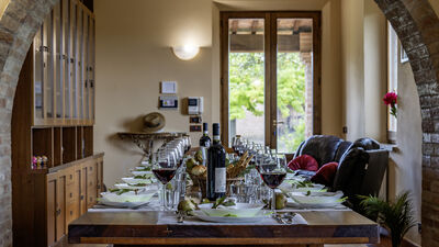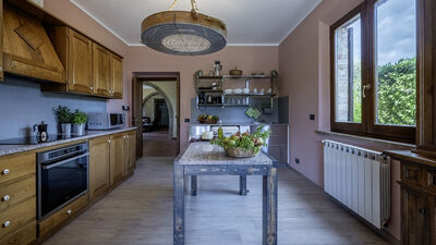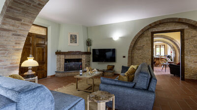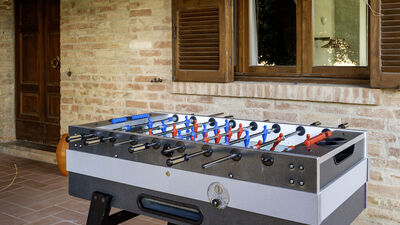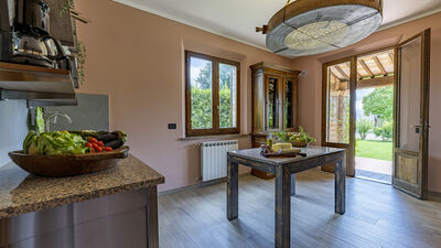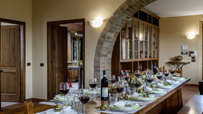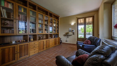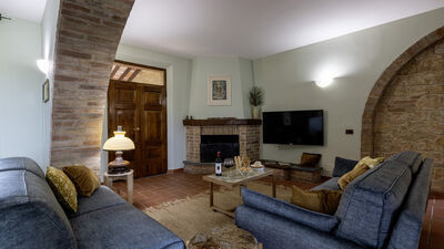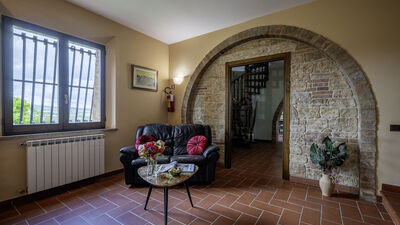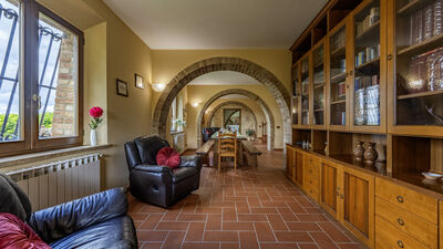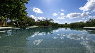 Nell’ampio terreno che circonda la proprietà, inserita all’interno di un’azienda agricola estesa per circa 25 ettari, si trovano coltivazioni di ulivi e viti, distribuite lungo il perimetro e nella vallata adiacente alla zona piscina. All’interno di quest’area si sviluppa un giardino pianeggiante di circa 2000 mq, caratterizzato da zone a prato, ulivi, cespugli di rosmarino e oleandri che incorniciano il perimetro della piscina. Su due lati del casale si trovano porticati attrezzati: uno con tavolo da pranzo, in corrispondenza dell’uscita dalla cucina, e l’altro con biliardino, situato lateralmente alla casa. L’area barbecue è collocata accanto a una grande terrazza lastricata che si affaccia su un suggestivo belvedere panoramico. La proprietà dispone inoltre di un’area adibita a parcheggio, situata subito dopo il cancello d’ingresso, e di un forno a legna.N.B.: Si precisa che i servizi fotografici solitamente vengono realizzati in primavera, pertanto i colori e le fioriture dei giardini, dei prati e dei parchi potrebbero essere diversi al momento del vostro ingresso in villa.