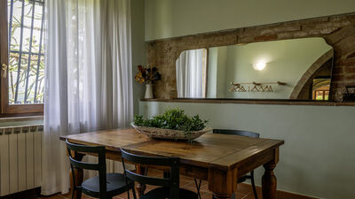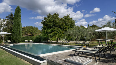 Le ordinate geometrie dei vigneti, i campi dorati e i profili delle torri di Montepulciano fanno da sfondo alla panoramica piscina a sfioro di Podere Gellino, rustico podere toscano immerso nel verde, a circa tre chilometri da Chianciano Terme, celebre per la sua architettura e la tradizione termale che ne fa un punto di riferimento internazionale sin dai tempi etruschi.Il podere, composto da un casale e un annesso adiacente, si trova in posizione collinare all’interno di un’azienda agricola, circondato da un parco con ulivi ed essenze mediterranee. Dispone di ampie zone living affacciate su porticati attrezzati, camere confortevoli e bagni moderni. È la base ideale per vivere la quiete della campagna senese e scoprire un territorio ricco di natura, arte, cultura ed eccellenze enogastronomiche. A pochi minuti si trovano Montepulciano, Pienza, Montalcino, Sarteano, Cetona e San Casciano dei Bagni. Ottimi collegamenti permettono di raggiungere anche Siena e le città umbre di Orvieto, Perugia e Castiglione del Lago. Prima di ripartire, non può mancare un momento di relax nelle acque termali di Chianciano o in quelle di Montepulciano, Bagno Vignoni e San Casciano dei Bagni.