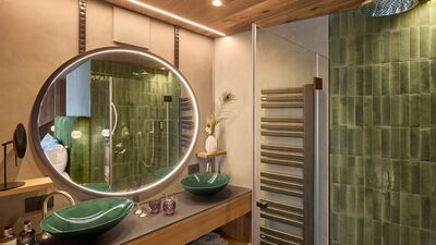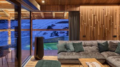 Al piano terra si trovano tre camere matrimoniali, ciascuna con bagno en-suite e aria condizionata, con accesso diretto al giardino e alla piscina esterna riscaldata fruibile tutto l’anno. Il primo piano è il cuore sociale dello chalet: un ampio open space sotto travi a vista, con zona pranzo, divani, camino e maxi schermo con proiettore, abbinato a un sistema audio surround Bang & Olufsen di alta gamma. Le vetrate a tutta altezza incorniciano la natura e si estendono verso le terrazze, perfette per colazioni lente e serate conviviali. Al piano inferiore, la spa privata (200 m²) comprende sauna finlandese, bagno turco, doccia emozionale Aquamoon con giochi d’acqua e luci, snow shower con vera neve, lounge relax e una piscina esterna 10×4 m con nuoto controcorrente e getti idromassaggio. Completano l’area una palestra compatta Technogym, vital bar (tisane, succhi, frutta fresca), spogliatoio e lounge accogliente. All’esterno: garage privato con colonnina di ricarica per auto elettriche, deposito bici/sci chiudibile a chiave e una piazzola per elicottero accanto allo chalet.