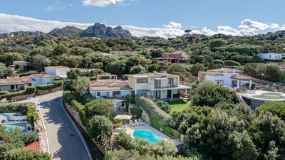 Villa Pitrizzina è una residenza su due livelli immersa in un giardino mediterraneo, a pochi minuti da Porto Cervo e dalle celebri spiagge della Costa Smeralda. La proprietà confina con altre ville, dalle quali è separata da una fitta vegetazione autoctona che ne delimita il perimetro garantendo privacy. Situata in una zona residenziale privilegiata, permette di raggiungere facilmente spiagge e servizi. Dal giardino, una scala e un viale pedonale conducono in circa 5 minuti alla spiaggia più vicina. Gli ampi spazi interni sono affiancati da una veranda panoramica con vista mozzafiato sulle isole di Caprera, La Maddalena e Cappuccini, ideale per godere dei tramonti. All’esterno, la piscina con area solarium e il giardino recintato, ricco di vegetazione mediterranea e vialetti, offrono un’atmosfera di totale relax. Nel raggio di circa 1 km si trovano ristoranti, bar e supermercati, mentre le rinomate spiagge di Liscia di Vacca, Cala Granu e Cala Pitrizza sono facilmente raggiungibili in pochi minuti di auto.