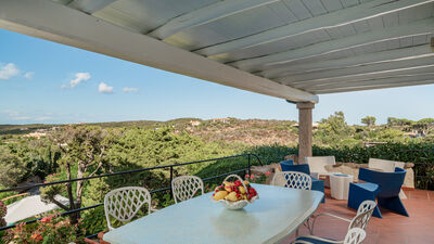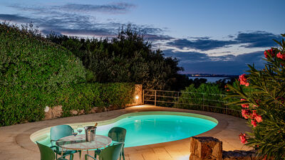 Il giardino recintato da siepi, muretti a secco e rete si estende per circa 1000 mq su due livelli. È arricchito da vegetazione autoctona, siepi di bouganville e oleandri e comprende l’area piscina e una spaziosa veranda che si sviluppa di fronte, attrezzata con tavolo da pranzo e con area salotto. Il tetto della villa ospita una panoramica terrazza solarium. Alla proprietà vi si accede tramite cancello carrabile posto lungo il viale di una zona residenziale, dopo il quale si trova una tettoia coperta con due posti auto.N.B.: Si precisa che i servizi fotografici solitamente vengono realizzati in primavera, pertanto i colori e le fioriture dei giardini, dei prati e dei parchi potrebbero essere diversi al momento del vostro ingresso in villa.