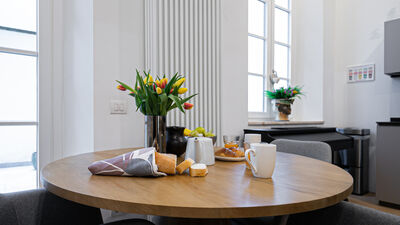 San Marco 14 è un appartamento spazioso di 77 metri quadrati situato al piano terra di un elegante edificio milanese senza ascensore. Gli ambienti sono ben distribuiti e luminosi, perfetti per un soggiorno confortevole in una delle città più dinamiche d'Italia. La posizione al piano terra garantisce un accesso diretto e pratico, ideale per chi viaggia con bagagli o preferisce evitare le scale.