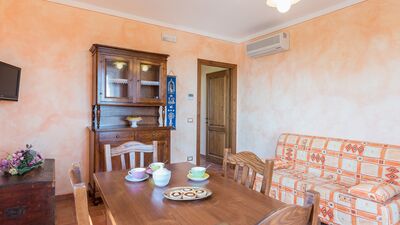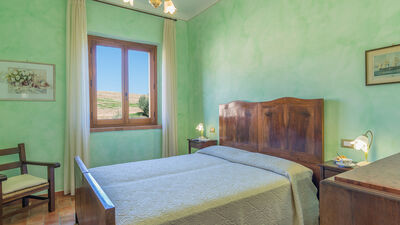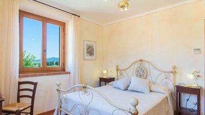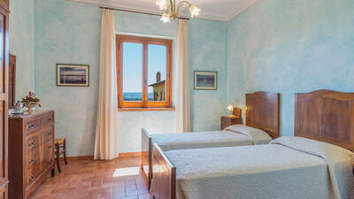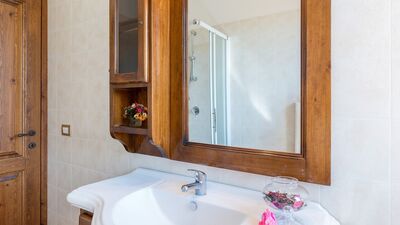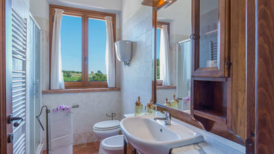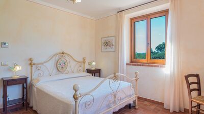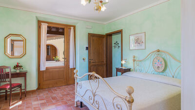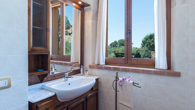La proprietà si compone di due strutture: la villa principale ed un annesso collegati da una larga corte lastricata in mattoni di cotto. VILLA PRINCIPALE. Si sviluppa su due piani non collegati tra loro internamente ma solo da scale esterne. Al pianterreno si sviluppa la zona comune: entrando dall'ingresso principale si viene accolti dal soggiorno con area salotto, caminetto, divani, tv satellitare ed angolo bar, e poi dalla zona con tavolo da pranzo. Ben collegata la cucina in stile professionale completamente accessoriata e la zona con i bagni di servizio, uno dei quali adatto per disabili. Il piano terra è completato dal locale lavanderia/stireria e da un bagno con doccia accessibili dall'esterno. Da due lati del piano terra partono due rampe di scale che conducono al piano superiore che alloggia due suite non collegate tra loro. Nella prima troviamo due camere matrimoniali (di cui una con letto divisibile) ed un bagno con doccia, mentre nella seconda, accessibile attraverso una splendida terrazza panoramica, si trovano una camera matrimoniale ed una camera doppia (con letti unibili) che condividono un bagno con doccia. ANNESSO. Ospita quattro suites con accesso indipendente e non comunicanti tra loro internamente. Al piano terra le prime due, accessibili attraverso un largo porticato attrezzato, disimpegnano una camera matrimoniale ed un bagno con doccia (uno dei quali è adatto a persone disabili). Le ultime due sono collocate al primo piano, raggiungibile attraverso una rampa di scale in cotto sul retro: ogni suite alloggia una camera matrimoniale servita da un bagno con doccia. Tutte le suites sono dotate di un'area soggiorno con angolo cottura a scomparsa, tv satellitare e cavo per il collegamento diretto alla wi-fi. L'annesso è completato da una maestosa zona living collocata al piano seminterrato ed accessibile da una scala esterna. La sala è amplificata con casse audio, accessoriata con video-proiettore e tv satellitare ed oltre ad essere un fresco punto relax/salotto, si presta ad essere utilizzata per meeting di lavoro o come sala conferenze. È servita da un bagno di servizio ed è collegata direttamente dall'esterno tramite porte vetrate.