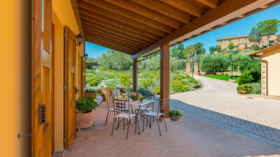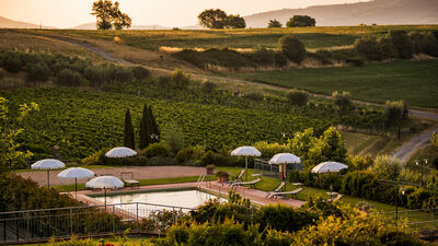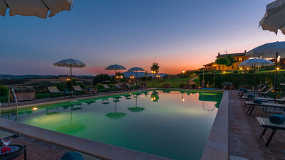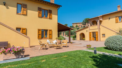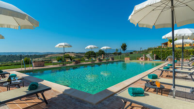 Magnifica proprietà ottenuta da un accurato intervento di recupero architettonico che ha trasformato in un esclusivo luogo di relax e benessere un antico podere agricolo di fine ottocento. Il fascino del classico casale di campagna è rimasto immutato e si rivela nell'originale tessitura delle pianelle in cotto che lastricano le corti esterne e i pavimenti interni, nel giallo ocra dei prospetti esterni alternati ai caldi colori melangiati degli interni finemente rifiniti ed arredati con cura. Le zone giorno, composte da due ampi saloni, di cui uno attrezzato per fungere da sala meeting/conferenze, una cucina professionale e le stanze da letto organizzate in separate suites con bagni privati per garantire spazi di autonomia a gruppi numerosi, sono tutti dotate di aria condizionata e di connessione wi-fi, estesa anche al bellissimo giardino. Situata in posizione appartata e collinare, in una zona di confine tra la regione umbra e la Toscana, a pochi passi da Chiusi, nel cuore della civiltà etrusca, e da Castiglione del Lago, bellissimo borgo sulle sponde del Lago Trasimeno, Poderina dei Poggi è ammantata da una natura brillante: dall’accudito giardino, un'autentica terrazza affacciata su un mare verde di viti, ulivi e campi coltivati, e dalla piscina, si offre una vista profonda sul paesaggio naturale che si allunga davanti e che comprende a nord- est le colline della Val di Chiana, nell’area a sud di Siena, con il suo corollario di stupendi paesini medievali, mentre a sud con lo sguardo si attraversano i profili delle confinanti città umbre di Panicale, Paciano, Città della Pieve, Cetona fino alle asperità del Monte Amiata. Un contesto davvero formidabile dove apprezzare le atmosfere distese che avvolgono questa proprietà, baricentro perfetto a pochi minuti dai principali raccordi stradali. Ad appena 7 chilometri c'è il borgo di Chiusi, con i suoi negozi, l'uscita autostradale e la stazione ferroviaria, ma spostandosi brevemente si raggiungono molte delle immancabili destinazioni che costellano i dintorni, partendo dai famosi borghi di Montepulciano, Cortona, Montalcino, Chianciano Terme, Pienza fino alla Val d'Orcia e alle grandi città d'arte di Perugia, Siena, Arezzo e Orvieto.