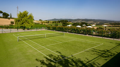 Il campo da tennis, privato e recintato, è rivestito in erba sintetica e ha dimensioni regolamentari. È collocato nelle adiacenze dell’area piscina a circa 30 m dai casali e si raggiunge attraversando il giardino. Racchette e palline saranno messe a disposizione degli ospiti.