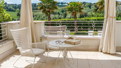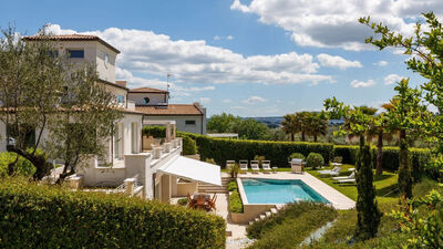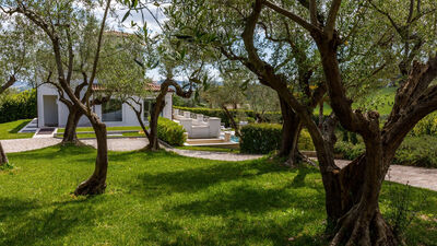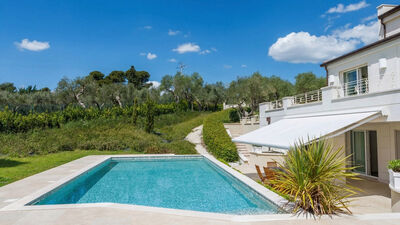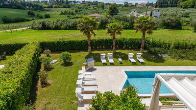 Il giardino di pertinenza della villa si estende per circa 2.000 mq. Entrando nella proprietà saremo abbracciati da splendidi ulivi centenari che illuminati la sera renderanno la vista sulla riviera romagnola qualcosa di indimenticabile. La zona di ingresso è completamente piantumata a prato, contornato da particolari aiuole composte da oleandri e da siepi di alloro ben curate. Davanti all'uscita del soggiorno si trova la zona pranzo arredata con tavolo e sedie e dotata di tenda motorizzata. Nella parte antistante la piscina, attraverso l'ampia vetrata del salone, si accede al magnifico gazebo che offre un suggestivo angolo relax.N.B.: Si precisa che i servizi fotografici solitamente vengono realizzati in primavera, pertanto i colori e le fioriture dei giardini, dei prati e dei parchi potrebbero essere diversi al momento del vostro ingresso in villa.