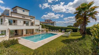 Nel contesto delle ville private, senza dubbio Villa Mandara rappresenta un vero e proprio capolavoro tra le proprietà di Riccione. Sia internamente che negli esterni l’abitazione è curata nei particolari, realizzata per affascinare ad ogni angolo anche l’ospite più attento. La proprietà si sviluppa su circa 460 metri quadrati di superficie, di cui 350 interni, e la recente costruzione ha incorporato una moltitudine di elementi d’arredo della migliore qualità e design. Il risultato lascia senza parole, ogni ambiente si caratterizza per particolari di grande gusto e ricercatezza, mentre i bagni di notevoli dimensioni aumentano la sensazione ariosa e luminosa dell’insieme. Anche esternamente Villa Mandara garantisce un’esperienza eccezionale, l’attraente piscina piastrellata in bianco è circondata da un lussureggiante e curato giardino, situazione per intrattenimenti vari anche di notte, quando una sapiente illuminazione creata su misura regala un’atmosfera magica. Villa Mandara è senza dubbio una proprietà di grande livello, una delle scelte più prestigiose a Riccione.