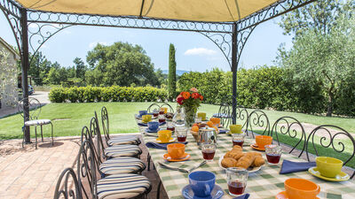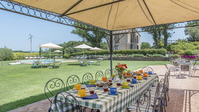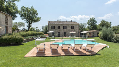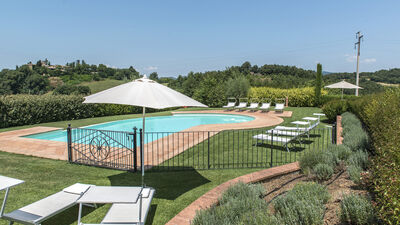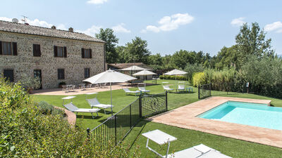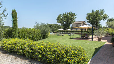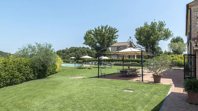 La villa è circondata da circa 3000 mq di giardino recintato e curato, delimitato naturalmente da siepi e da una fitta vegetazione di alberi ad alto fusto che la separano dalla vasta area boschiva e dai terreni coltivati che fanno parte della proprietà. Un grande prato pianeggiante si trova sul lato opposto della villa rispetto all’ingresso principale. Al centro si trova la piscina esterna recintata. Una terrazza in cotto tra la casa e il prato è attrezzata con un gazebo ombreggiato per pranzi all’aperto. Nelle vicinanze, ulteriori tavoli e sedie offrono spazi per leggere o rilassarsi. Un barbecue in muratura è ubicato accanto al casale. Un breve vialetto sterrato conduce dal cancello d’ingresso all’area parcheggio di fronte alla casa.N.B.: Si precisa che i servizi fotografici solitamente vengono realizzati in primavera, pertanto i colori e le fioriture dei giardini, dei prati e dei parchi potrebbero essere diversi al momento del vostro ingresso in villa.