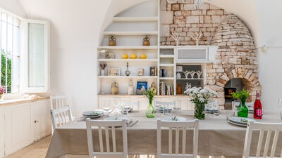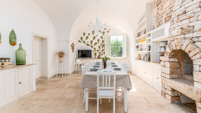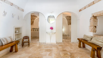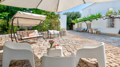 Masseria Profilo si trova all’interno di un ampio parco verde nel cuore delle campagne monopolitane. Lo spazio esterno della Masseria è un trionfo di colori: la tipica pavimentazione con chianche, le tettoie esclusivamente con viti rampicanti e il barbecue in pietra la fanno da padrone in questo quadro arricchito da fiori multicolore e piante della macchia mediterranea. La zona pranzo esterna è attrezzata appena fuori la porta finestra della cucina. Un vialone di circa 300m rappresenta un’oasi di pace e darà la possibilità di passeggiare e godere di tutti i profumi delle piante selvatiche durante la passeggiata all’ombra degli alberi. Su un lato della struttura è presente una doccia con acqua sia fredda che calda. La zona parcheggio si trova superato il cancello di ingresso che immette nella proprietà.N.B.: Si precisa che i servizi fotografici solitamente vengono realizzati in primavera, pertanto i colori e le fioriture dei giardini, dei prati e dei parchi potrebbero essere diversi al momento del vostro ingresso in villa.