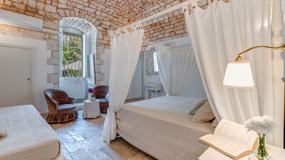 Masseria Profilo è un’antica abitazione rurale inserita all’interno di grande parco, immersa nelle campagne di Monopoli, in un paesaggio ammantato da ulivi secolari e definito dai tipici muretti a secco realizzati con la pietra bianca. E’ costituita da due distinte ma adiacenti unità: la dimora storica del 1700 e un annesso originariamente adibito a stalla, entrambe recuperate attraverso uno splendido restauro conservativo che mette in evidenza dettagli tipici delle costruzioni pugliesi, come la tipica pietra bianca. Masseria Profilo è circondata da una vegetazione rigogliosa, alberi di ulivo e mandorli. La sua ubicazione è ideale per chi desidera andare alla scoperta della Puglia vera visitandone i luoghi più caratteristici come Alberobello, Polignano a Mare, Ostuni o lo splendido centro storico di Monopoli con il suo castello di Carlo V adagiato sul mare cristallino e le sue molteplici Chiese. Le spiagge più vicine sono le caratteristiche calette di Monopoli, un alternarsi di spiaggette sabbiose e rocciose che fanno da cornice al mare cristallino: vale la pena fare un tuffo nella tipica Cala di Porta Vecchia dove, dal mare sarà possibile ammirare le mura del centro storico e il campanile della Cattedrale.