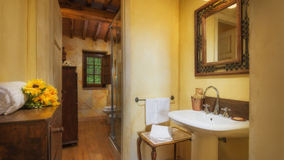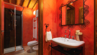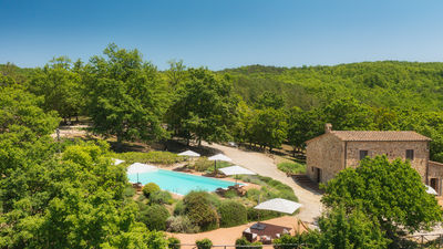 Podere Santa Croce si trova nella prossimità di una riserva naturale, in una zona boschiva intorno a Radicondoli, panoramico paesino a est della provincia di Siena. La proprietà è incorniciata da un autentico polmone verde di cerri, lecci e pioppi, ideale per godere di straordinari paesaggi naturali e di lunghe passeggiate. Podere Santa Croce è un antico casale in pietra, sapientemente ristrutturato grazie ai materiali originari integrati da manifatture di artigianato locale che danno vita al complesso che si compone del casale principale e di un annesso attiguo. Tutte le camere sono dotate di aria condizionata, di bagno privato e si distinguono ognuna per uno stile proprio. Gli ambienti del piano terra godono tutti di accesso diretto sul giardino dove le ampie terrazze attrezzate permettono di godere di della tranquilla atmosfera della campagna circostante. Completa il quadro idilliaco la piscina contornata da piante aromatiche e attrezzata per il relax. Belforte, la frazione più vicina (9 km) dispone di un piccolo alimentari e un ristorante, mentre la famosa Radicondoli a 12 km ha il servizio postale, ristoranti e un supermercato più fornito. Questa vacanza è ideale per chi ama stare lontano dalla città, stare a contatto con la natura e rilassarsi completamente.