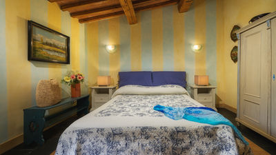 Podere Santa Croce è costituito da due blocchi indipendenti distanti tra loro 60 m, il casale e l’annesso. Il CASALE è su due livelli collegati da scala interna. A piano terra è situato l’ingresso principale che si apre sulla sala ingresso. Essa collega un salotto con tv con porta finestra sul retro, una camera matrimoniale con bagno en-suite con doccia e con porta finestra lato piscina, la cucina e la sala da pranzo con accesso all’area pranzo esterna e alle scale interne. Le scale portano al primo piano, dove si affacciano due camere matrimoniali con bagno privato con vasca, e una camera matrimoniale con bagno privato con doccia (con terrazza esterna sul piano). L’ANNESSO è composto da un salotto, una camera matrimoniale e un bagno con doccia. Aria condizionata solo nelle camere.
