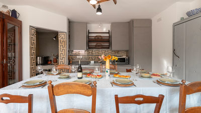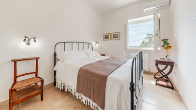 La villa si sviluppa su due piani collegati da scale interne ed esterne. PIANO TERRA – Ingresso in soggiorno open space con smart TV e panca in muratura; zona pranzo e cucina; bagno di servizio; scala in legno per il primo piano. PRIMO PIANO – Soggiorno con smart TV e accesso alla veranda arredata; angolo cottura; corridoio che conduce a una camera matrimoniale con bagno privato con doccia; una camera matrimoniale (letto alla francese) con bagno privato con doccia; altre due camere matrimoniali (una con letto alla francese) che condividono un bagno con doccia e vasca. La lavanderia ha accesso dall’esterno ed è collocata in un bagno con doccia al servizio della vicina piscina. Aria condizionata nelle camere.