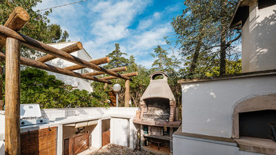 Il giardino recintato di 5.000 mq è arricchito da alberi tipici della macchia mediterranea e cespugli fioriti, tra cui querce, pini, lentischi, corbezzoli, carrubi e cedri del Libano. Sentieri tranquilli si snodano attraverso il terreno fino a un laghetto con piante acquatiche e un’area giochi dedicata ai più piccoli. Il giardino offre tre aree pranzo all’aperto: una pergola vicino alla villa, ombreggiata da glicini e arredata con tavolo e sedie in pietra; una cucina esterna coperta con forno a legna e barbecue; e un gazebo immerso nella querceta. A disposizione degli ospiti anche un parcheggio con sei posti auto, accessibile tramite due cancelli automatici che conducono alla villa e all’area di sosta.N.B.: Si precisa che i servizi fotografici solitamente vengono realizzati in primavera, pertanto i colori e le fioriture dei giardini, dei prati e dei parchi potrebbero essere diversi al momento del vostro ingresso in villa.