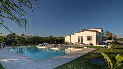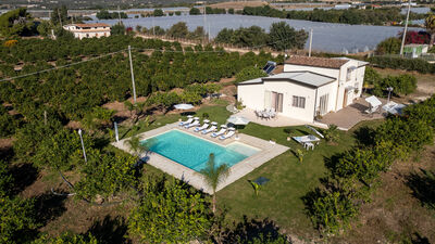 Profumo di Zagara è una villa su due livelli recentemente ristrutturata, situata alle porte di Ispica e immersa in una vasta piantagione di limoni nel sud-est della Sicilia. Dal design contemporaneo, la villa comprende tre camere matrimoniali, un’ampia zona giorno e pranzo con accesso diretto al giardino, e una suite indipendente su due livelli con divano letto e zona notte su soppalco. Gli interni sono moderni e funzionali, con porte-finestra che collegano gli spazi interni alla zona pranzo esterna e al terrazzo con piscina. All’esterno, prati pianeggianti, aree relax ombreggiate e una piscina con zona idromassaggio e cascata offrono un ambiente ideale per il relax. Circondata da alberi di agrumi e siepi fiorite, la villa regala una cornice suggestiva per una vacanza all’insegna della tranquillità. Le spiagge di Santa Maria del Focallo e Marza si trovano a breve distanza in auto, così come le città barocche di Noto, Modica e Ragusa.